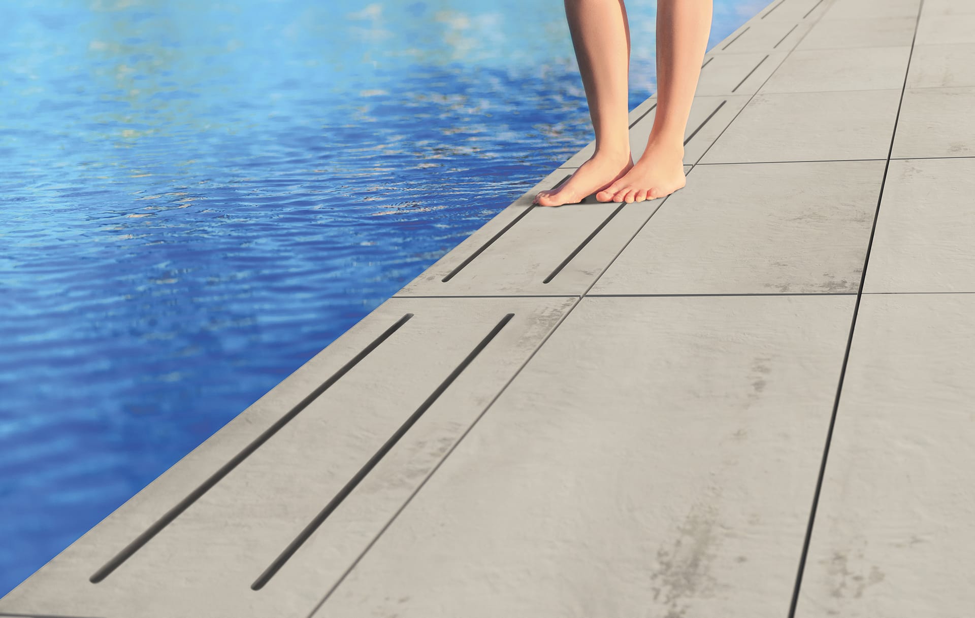 Los suelos de exterior antideslizantes son la mejor solución para patios, jardines y piscinas. Todos los porcelánicos para exteriores de Apavisa tienen el certificado de antideslizante Clase 3. En definitiva, el gres porcelánico con resistencia al deslizamiento reúne las características necesarias para que todos estén a salvo de caídas o percances.