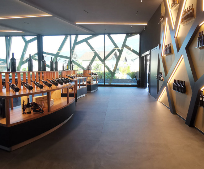 El objetivo era construir una nueva sala de degustación en Kanton Wallis, cuya cáscara decorativa está inspirada en ramas de vid. Se llaman Sarment en Suiza. El proyecto se llevó a cabo a través de una atractiva estructura de aluminio lacado en oro, que aumenta su atractivo por la noche. Porque entonces unas luces especiales ponen su luz suave sobre la estructura y la dejan brillar discretamente como la seda.