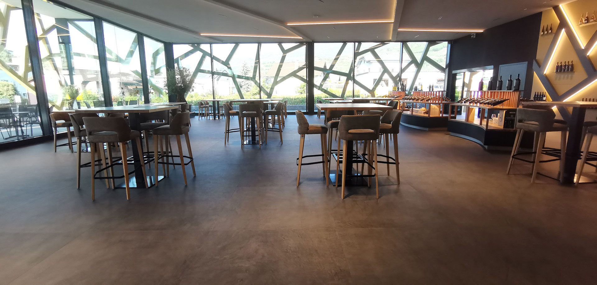Una sala de catas llena de luz en Suiza